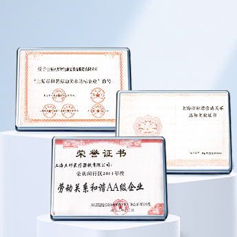 獲得上海市閔行區(qū)“勞動(dòng)關(guān)系和諧A級(jí)企業(yè)”稱號(hào),閔行區(qū)科技小巨人(培育)企業(yè)。